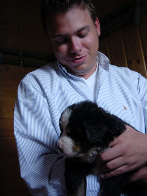 Hier hat mich nun Herrchen auf dem Arm.