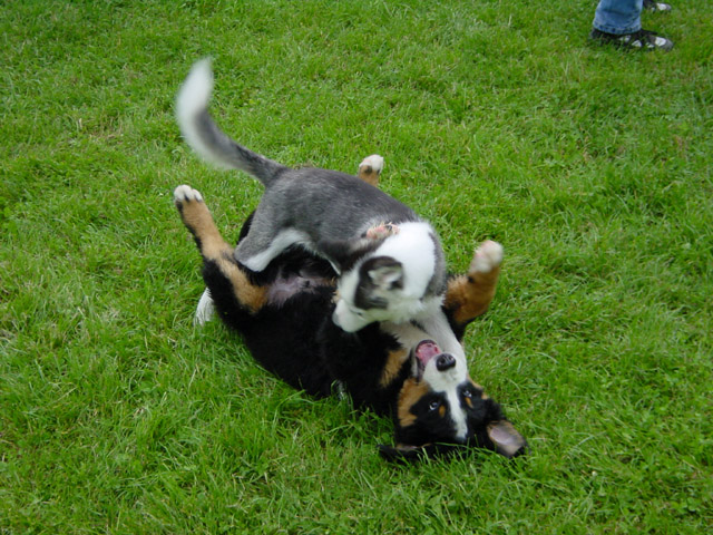 Freitags ist Spielstunde. Das ist immer ganz ganz toll. Hier seht Ihr mich mit meinem Lieblings-Huskie.